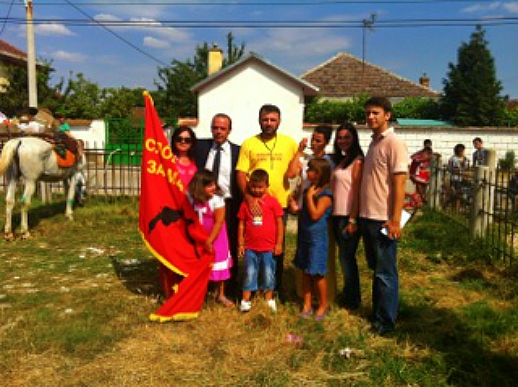 На фотографијата е фамилијата Тарчуловски со фамилијата на градоначалникот на Кривогаштани