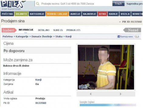 Татко го продава својот син преку оглас, и тоа во категоријата „коњи“. За него е можна замена за дрва за зима.