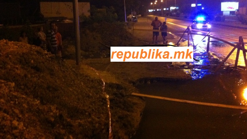 Екипите на ЈП „Водовод и канализација“ се на терен и се обидуваат да го санираат проблемот, а кај скршената цевка беа собрани и граѓани кои за „Република“ го објсануваат проблемот од кој можеа да настрадаат нивните куќи.