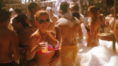 Водителката Маја Поцевска се појави на свадбата на ракометарката Андријана Будимир во фустан со шлиц до колк. Со неколку фотографии во оваа креација Маја се пофали и на нејзиниот профил на „Фејсбук“.