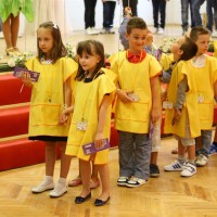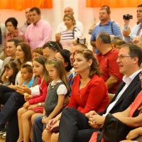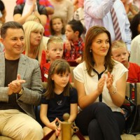 Премиерот заедно со сопругата и со ќерката ја следеше претставата за добредојде на првачињата.