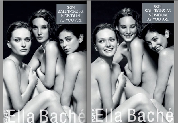 Рекламата експресно беше заменета со новата фотографија, на која манекенките се голи и среќни.