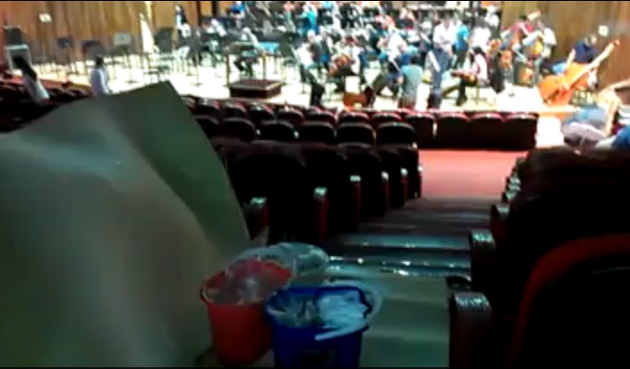Дождот кој утрово го зафати Скопје не ја прекина пробата на Македонската филхармонија. И покрај тоа што во салата на Домот на АРМ, од покривот течеше огромно количество на вода, кое двете кофички не го собраа, музичарите професионално продолжија со вежбањето, секој на својот инструмент.