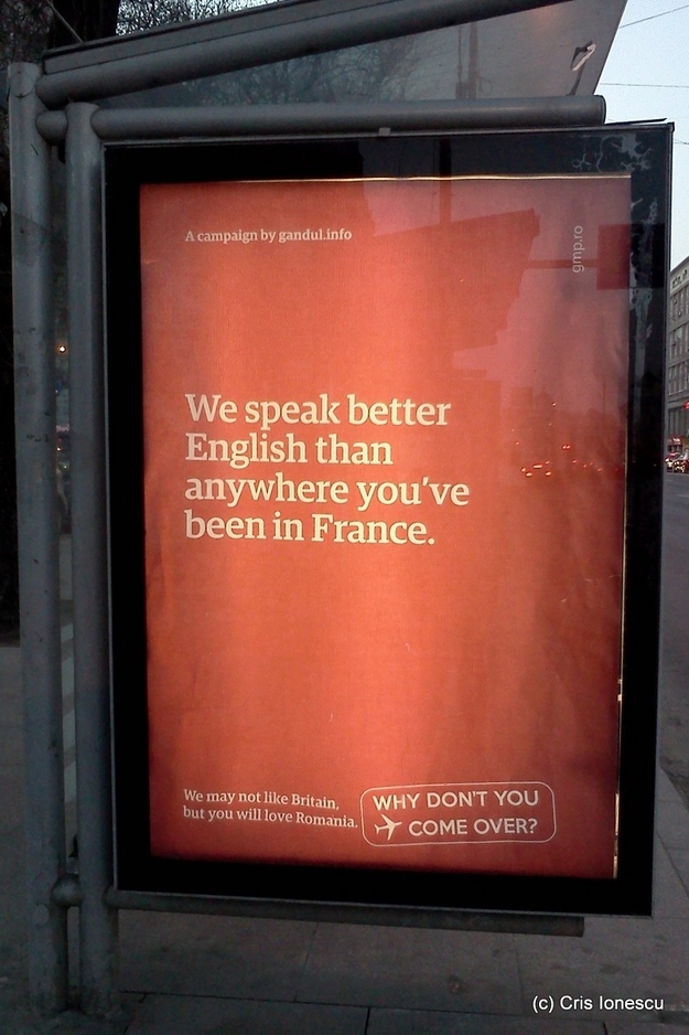 Брилијантната кампања на романскиот дневен весник „Гандул“ е одговор на една британска кампања од јануари. Поради зголемениот број на имигранти од Романија и Бугарија, Англија кај нив стартуваше негативна кампања за својата земја, наречена „Зошто нема да ви се допадне кај нас“.