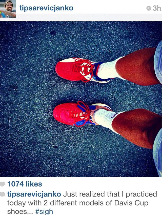 Токму тоа му се случи на српскиот тенисер Јанко Типсаревиќ, со различни патики го одработи тренингот, меѓутоа тој не се засрамил, својата грешка ја споделил на социјалните мрежи.