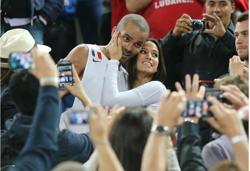 Додека траеше борбата во финалето на кошаркарскиот терен, од трибините го следеше и поубавата половина на играчот на Франција, Тони Паркер.