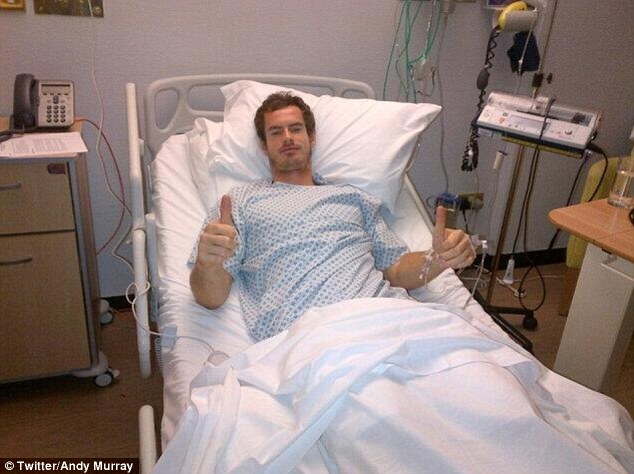 Шампионот од Вимблдон Енди Мареј постираше слика на својот Твитер профил како се опоравува во болнички кревет после операцијата на грбот.