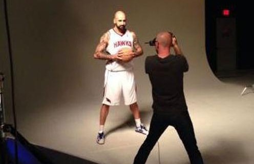 Облечен во дресот на Атланта со баскет во рацете, македонскиот кошаркар Перо Антиќ позираше пред фотографот за фото-сесијата на кошаркарите од тимот.