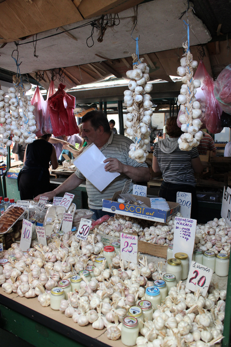Бутик за лук. Еден и единствен во Македонија. Едно чешне чини 10 денари. Има и за 20 денари. На тезгата ќе забележите и врзопче од 50 денари кое се вика „Рамбо“. Муштериите му го дале името. Се продава и на килограми. Има за 200 и за 250 денари за килограм. Има и макало, направено исклучиво од лук, зејтин, сол и лимон. Чини од 80 до 180 денари во зависност од количината. Макалото е за гурмани, за оние кои уживаат во храната.