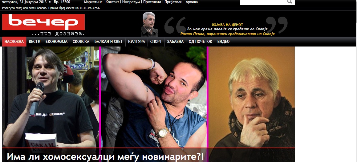 Откако „Вест“ реши да ја стави уредничката на Вечер, Ивона Талевска на листата на новинарки (водителки) за кои се гласаше која од нив би можела без гаќи да му направи интервју на премиерот Никола Груевски, Талевска му врати на својот колега од Вест, Горан Михајловски. Има ли хомосексуалци меѓу новинарите е насловот на веста на сајтот на Вечер, каде се појавува и фотографија од Горан Михајловски.