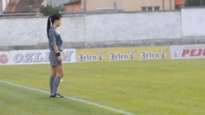 На натпреварот од Српската лига помеѓу Јошанице и Победа Белошевац покрај аут линијата гледачите можеа да види како ја дели правдата убавата Александра Милојевиќ.