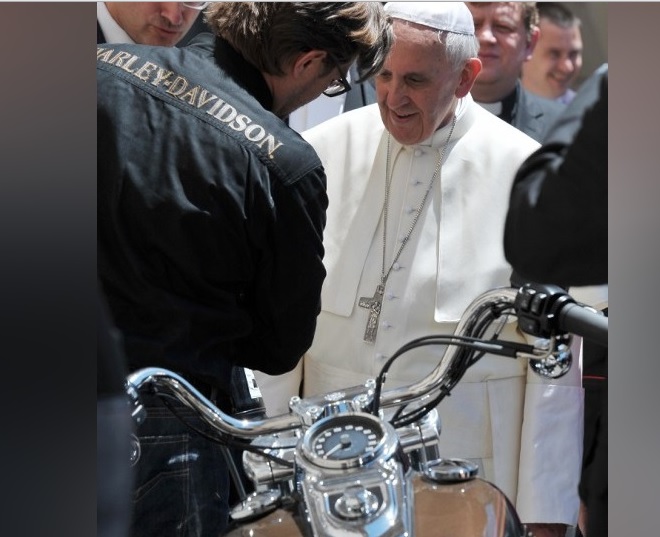 Папата Фрањо реши на аукција да го продаде својот Харли Дејвидсон, мотор кој го доби на поклон, кога 35 илјади моторџии љубеници на оваа марка поминале низ рим во чест на 110 годишнината на американскиот бренд.