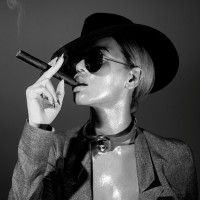 Пејачката заводливо позира на софа во шорцеви и високи чизми, а на другата фотографија пак го покажува своето секси деколте во бело палто, пушејќи пура.