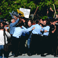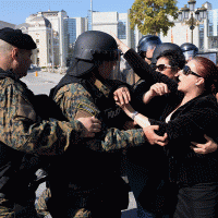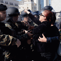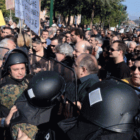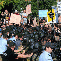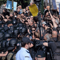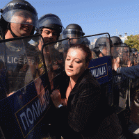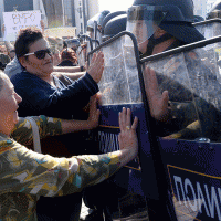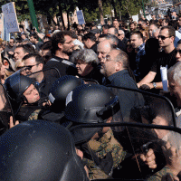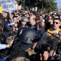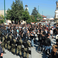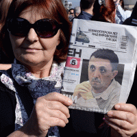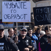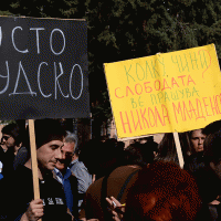Денеска се одржа протест против високата судска казна за новинарот Томислав Кежаровски. Дел од присутните на протестот, симболично во име на слободата организиран на празничен ден пред музејот на ВМРО, влегоа во конфликт со полицијата која го обезбедувала местот на протестот. Меѓу оние кои протестираа има и лица кои својата новинарска професија одамна ја напуштиле заради други, политички фукции, сега или во минатото. Меѓу они кои го набљудуваа протестот беше и евроамбасадорот Аиво Орав.