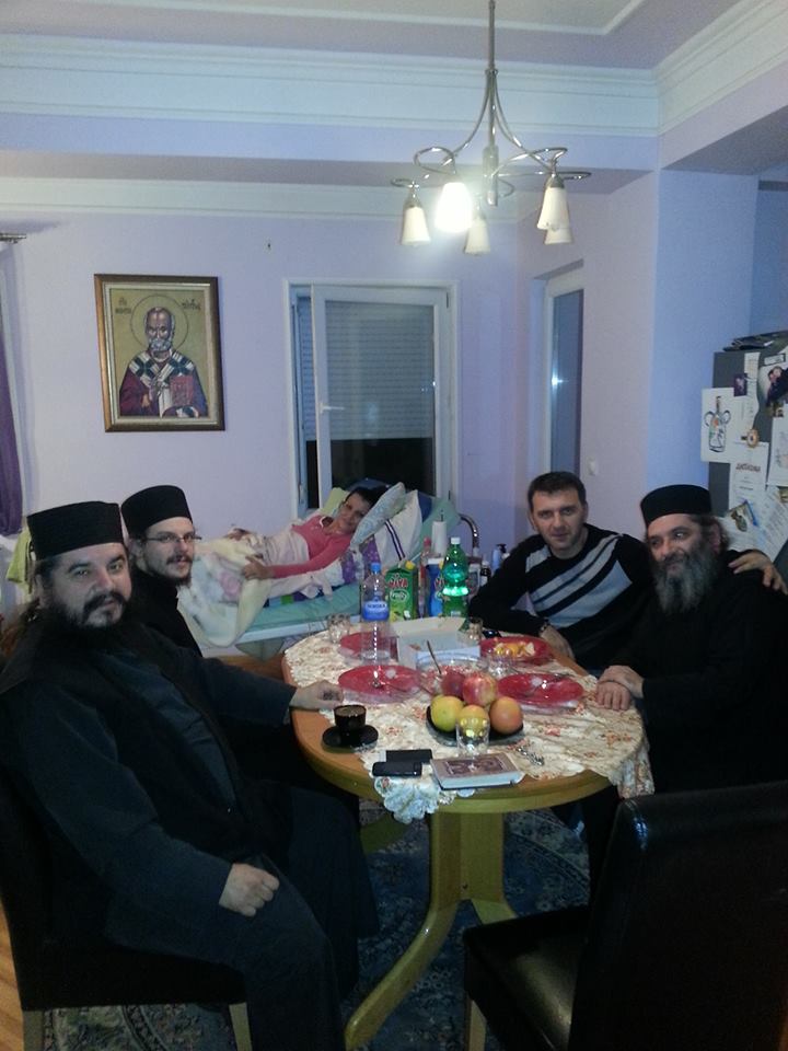 По несреќата што ја доживеа, Соња Тарчуловска полека заздравува од повредите во својот дом, во кругот на семејството. Таа денеска на својот профил на „Фејсбук“ објави фотографија на која во посета ѝ се отец Партениј, отец Доситеј и Кирил. Тие се фотографирани заедно со нејзиниот сопруг.