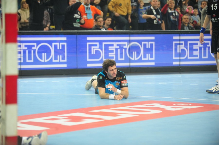 Металург започна добро со погодоците на Козлина и Ракчевиќ, со што поведе со 3:0,а домаќините шест минути беа без постигнат погодок. Но веќе во 17. минута за првпат беше израмнет резултатот, 8:8, по што домаќинот го презеде водството – 10:8. Од 20. до 24. минута, Металург направи серија од 4:0 и повторно го презеде водството, 11:13. На пауза ракометарите на Металург заминаа за погодок помалку – 15:14.