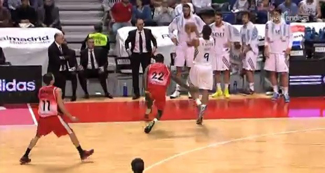 Кошаркарот Фелипе Рејес кој ја има задачата центар, сигурно од него не се бара да дава тројки, но откако топката му дојде во раце во последните секунди во првото полувреме, не му остана ништо друго, туку да проба да погоди од неверојатна позиција.