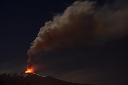 epa03954278 Mount Etna on the east coast of the southern Italian island of Sicily is pictured during an eruption on 17 November 2013. Mount Etna is one of the most active volcanoes in the world and is in an almost constant state of activity. EPA/DAVIDE CAUDULLO