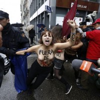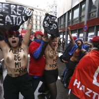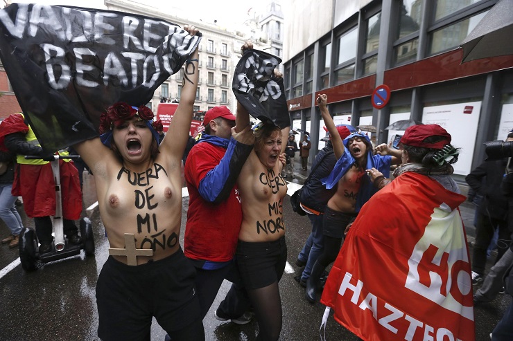 Активистки на организацијата за заштита на правата на жените „Фемен“ го прекина митингот против абортус, кој се одржуваше во Мадрид во организација на христијанските групации.