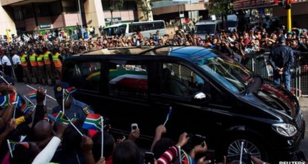 Телото на Нелсон Мандела денеска пристигна Куну, малото село каде Мандела го поминал своето детство, а каде утре ќе биде погребан. Погребната поворка влегла низ капијата на имотот на Мандела, следена со воени возила, додека местото го надлетувале хеликоптери.
