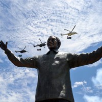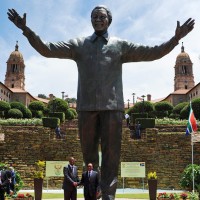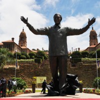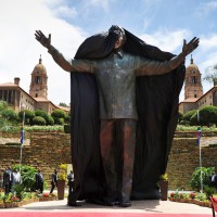 Откриена деветметарската бронзена статуа на починатиот претседател Нелсон Мандела во Јужна Африка.