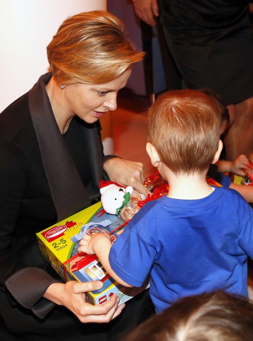 epa03994095 Monaco’s Princess Charlene distributes Christmas gifts to children at the Red Cross nursery in Monaco, 17 December 2013. EPA/SEBASTIEN NOGIER