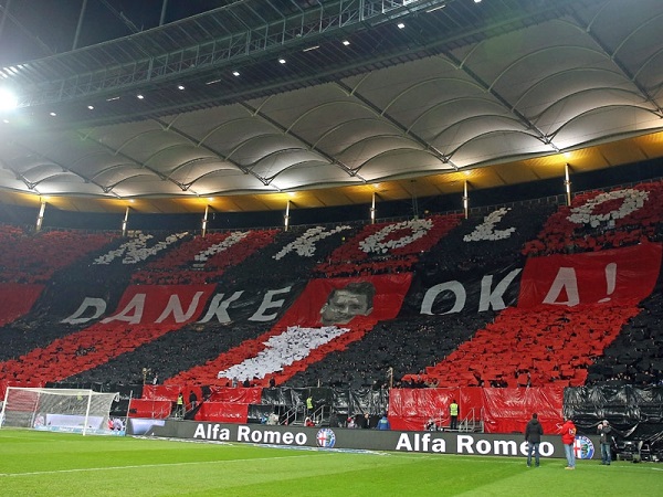 Спектакуларно простување од единствениот клуб за кој настапувал, Ајнтрахт, вечерва во Франкфурт имаше македонскиот голман Ока Николов. Навивачите му приредија незаборавно доживување на 39-годишната легенда на клубот, со прекрасна кореографија. Целата трибина позади голот беше обоена во клупската црвено-црна боја, а симпатизерите на Ајнтрахт испишаа парола „Ти благодариме Ока“.