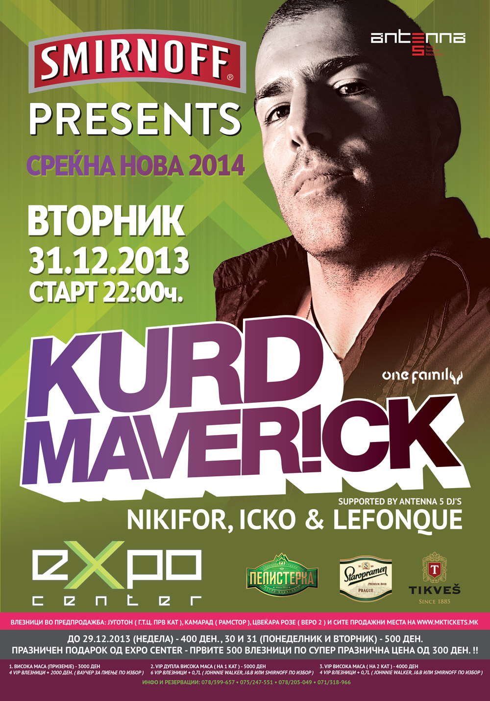 Меѓународниот суперстар диџеј и водечки светски ремиксер на Роби Вилијамс, Боб Синклер, Бој Џорџ и други, етаблираниот Курд Маверик од „Спинин рекордс“, ќе ја забавува публиката во „Експо центар“ за новогодишната ноќ. Еден од најголемите хитови на денешницата „Hell Yeah” е неприкосновен хит на човекот кој го нарекуваат господар на хаус музиката, а траката има и своја верзија со добитникот на наградата „Греми“, Жермејн Дупри.
