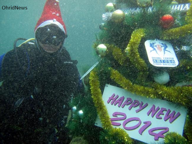 По дванаесетти пат, нуркачите од Нуркачкиот центар „Амфора“  и Клубот за подводни активности „Охрид“ во соработка со Сојузот за подводни активности на Македонија, денеска го украсија Охридското Езеро со новогодишна елка.