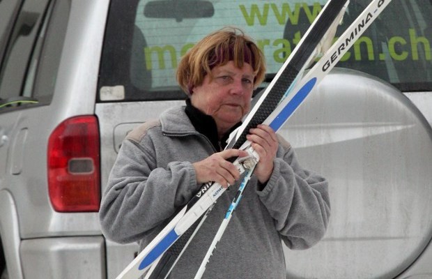 Германската канцеларка Ангела Меркел падна додека со своите двајца телохранители беше на крос-кантри скијање во близина на познатиот швајцарски скијачки центар Сент Мориц. Поради пукнатини на карлицата предизвикани од падот, Меркел ќе мора да одмара три недели, а според германските медиуми, причината за несреќата на канцеларката веројатно се старите скии, кои таа ги користи повеќе од 20 години.