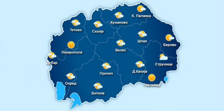 Во Скопската котлина наутро ќе има услови за слаба магла, попладне ќе има услови за намалување на облачноста, кога ќе задува слаб северен ветер. Максималната температура ќе достигне вредност до 10 степени Целзиусови.