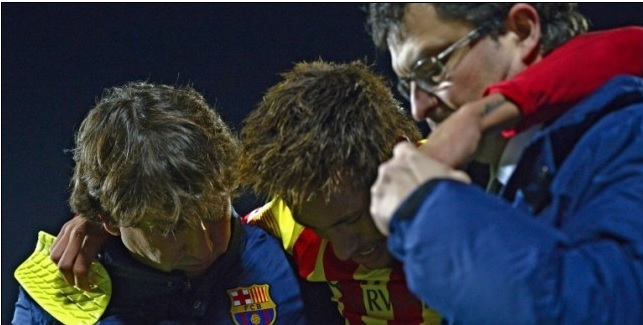 Еден од најдобрите фудбалери на Барселона, Бразилецот Нејмар, се повреди во 23. минута на повратниот натпревар од осминафиналето од Кралскиот куп против екипата на Гетафе, на која Барселона славеше со резултат 2-0.
