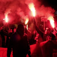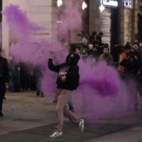 Демонстрантите возвратија со фрлање камења, а полицијата уапси неколкумина од нив.