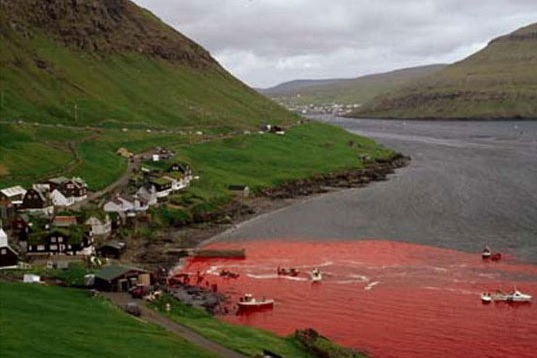 Но, тоа не е последициа на климатските промени, туку на еден традиционален ритуал во кој се убиваат стотици делфини.