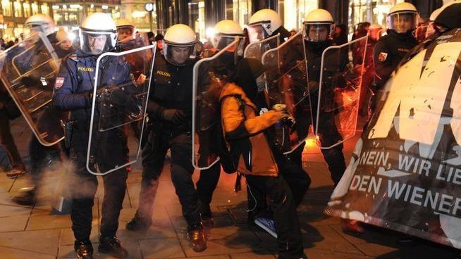 Сојузот Офанзивно против десницата, еден од организаторите на демонстрациите, ја критикуваше полицијата поради примена на прекумерна сила. Портпаролот на полицијата Роман Хаслингер демантираше дека е полицијата употребила прекумерна сила, нагласувајќи дека чуварите на редот морале да дејствуваат, бидејќи учесниците во протестите кршеле излози и напаѓале невини граѓани