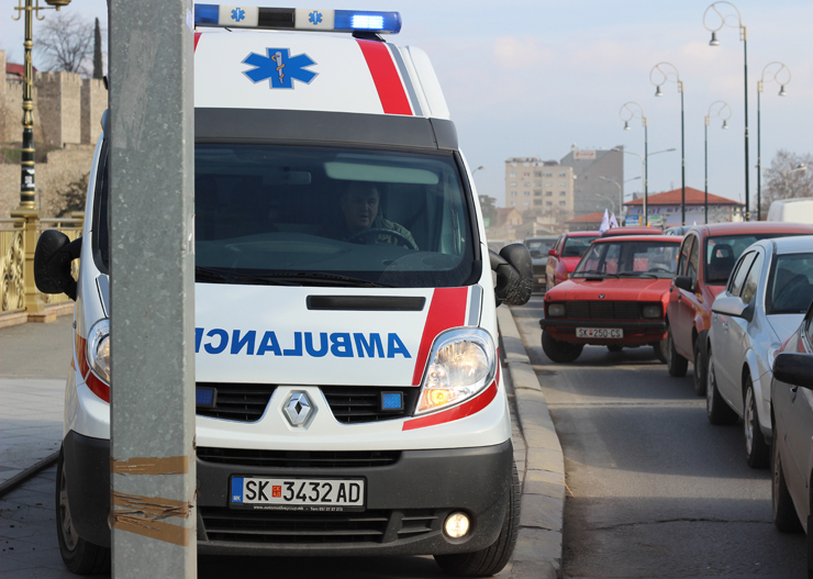 Возило на Брза Помош беше заглавено во конвојот Отпор. Возилото со вклучени ротациони светла мораше да вози по тревници и тротоари за да се пробие и да стигне навреме за да укаже помош на оној на кој му е потребно. Фотографиите се направени во саботата за време на протестот на Здружената опозиција, предводена од СДСМ.