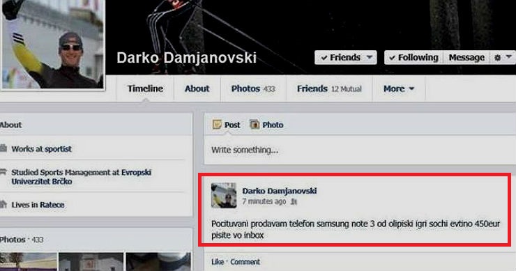 „Мојот телефон воопшто не се продава и нема таа цена која некој би ја платил за него. Но, овде во Сочи има многу други спортисти кои ги продаваат и воопшто не им значат ништо. Сакам да демантирам, по овие написи во медиумите, за да знае добро јавноста за што се работи. Повторно кажувам телефонот не се продава“, изјавил Дамјановски за весникот Вест.