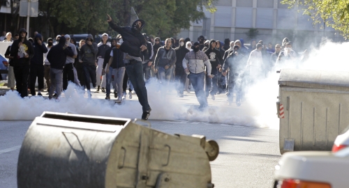 Демонстрантите фрлале со камења, на што полицијата одговорила со употреба на солзавец. Во судирите е повреден најмалку еден полицаец. На местото на протестот се распоредени и припадници на специјланите полициски единици.