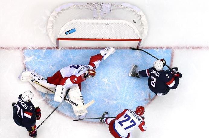 Во второто коло од групата А на хокеј турнирот во Сочи на зимските олимписки игри се одигра натпреварот меѓу САД и Русија. Овој крајно изедначен натпревар во регуларниот дел по три третини од 20 минути заврши со нерешен резултат 2-2.