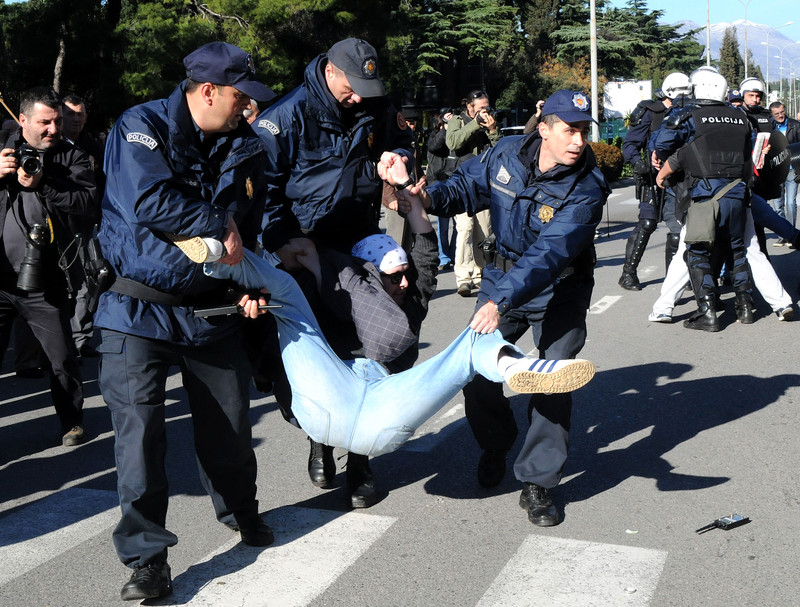 Група демонстранти фрлале со камења врз полицијата пред зградата на Владата на Црна Гора, на што полицијата одговорила со употреба на солзавец.