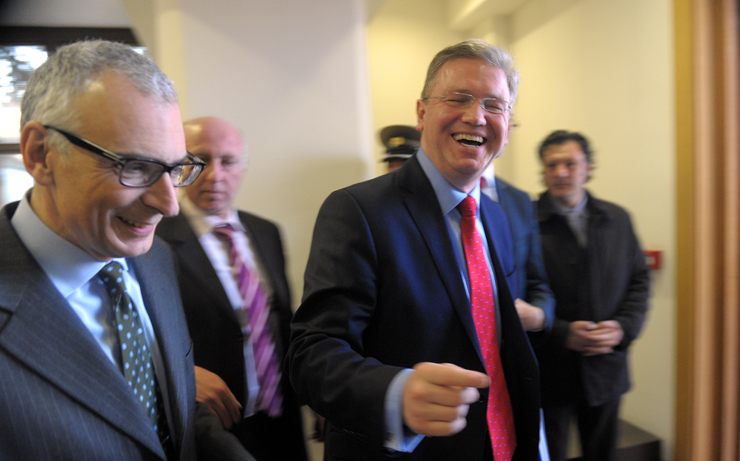Информацијата дека “десната рака“ на еврокомесарот на проширување Штефан Фуле е во земјава ја потврдуваат од делегација на ЕУ во Скопје, но велат дека немаат повеќе информации околу агендата на Санино.