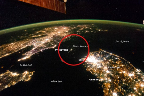 Фотографија која ја објави НАСА го докажува тоа што одамна се говори- дека Северна Кореја е буквално во темница. На фотографијата додека трае ноќта над двете Кореи, земјата изгледа како голема водена површина меѓу Јужна Кореја и Кина.