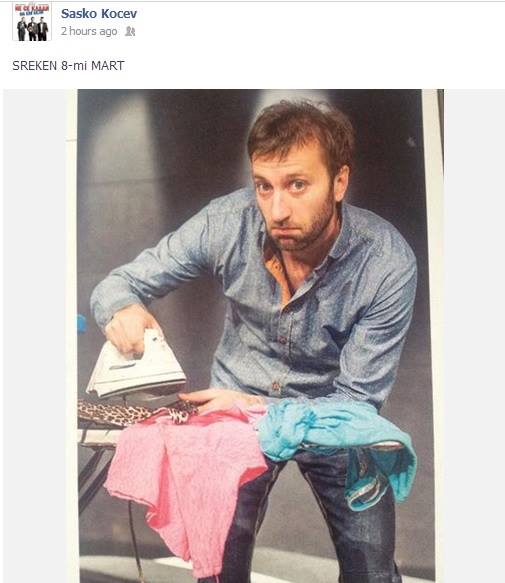 Со пегла во рака и тажно лице, актерот Сашко Коцев вака го честиташе Денот на жената, додвајќи во коментарите дека помеѓу него и даската е свршено.