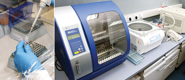 - Лабораторијата функционира од 2004 година. Станува збор за проект меѓу Институтот за судска медицина и Агенцијата за германска техничка помош (ГТЗ). Тоа е нивна донација. Од 2005 година досега континуирано се акредитираме во најголемата Агенција за акредитација на форензични лаборатории за ДНК во светот. Станува збор за тестови кои тие ни ги праќаат секоја година, содржат 14 примероци и претставуваат микс од повеќе биолошки материјали (крв, плунка, сперма). Значи, може да е една трага, може да се траги од четворица и треба да се докаже што е (крв, плунка, сперма) и со кој метод си го докажал тоа, како и да го одредиш генотипот за сите личности. Ние аплицираме за сите локуси што досега се измислени на молекулата на ДНК. Тоа се автозомни локуси (локуси се дел од молекулата каде што се наоѓаат гени од мајката и од таткото). Ги имаме акредитирано сите автозомни локуси. Станува збор за 50 локуси на молекулата на ДНК, и тоа за гени кои се наследуваат подеднакво од мајката и од таткото. Имаме лиценцирано 27 ипсилон-хромозоми – локуси кои се наследуваат само по таткото, и тоа е најголем број локуси кои се работат во светот. Од оваа година имаме акредитирано и митохондијална анализа на ДНК, која ја работеше колешката Рената Јанкова-Ајановска. Имаме цела палета на акредитации на локуси на ДНК-молекулата што се работат и ние сме единствената лабораторија во регионот што покрива лиценца со толкав број локуси на ДНК-молекулата, вклучувајќи ја тука и митохондијалната ДНК, што е врв во една форензична практика со ДНК – вели доцент доктор Златко Јаќовски, специјалист по судска медицина.