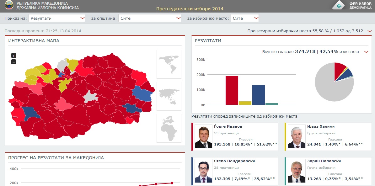 **Процент од избирачи кои гласале во избирачките места од кои пристигнале податоци