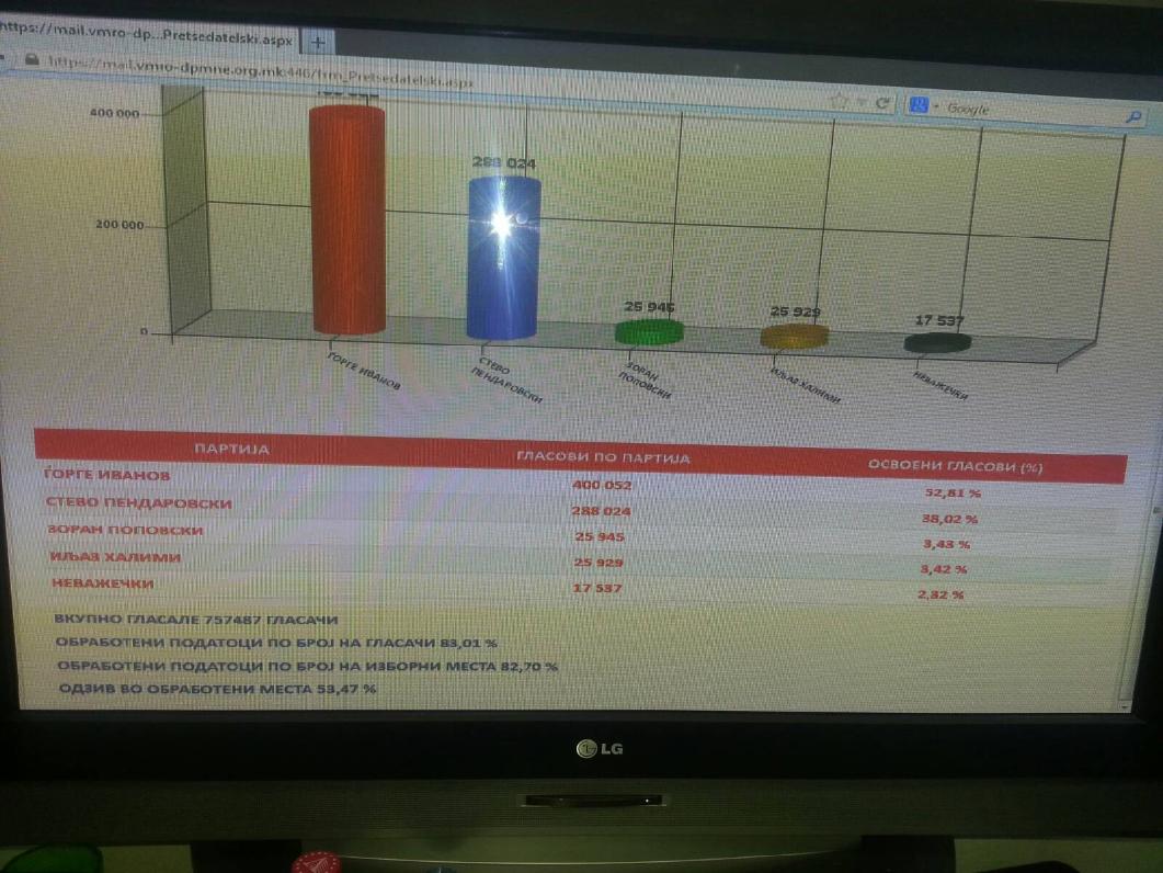 ВМРО-ДПМНЕ (83%): Иванов 400 052, Пендаровски 288 024