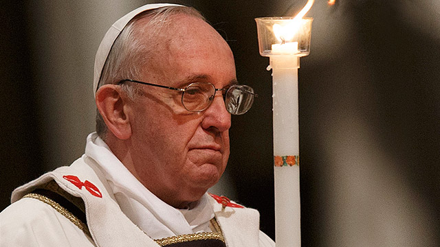 Поглаварот на Римокатоличката црква папата Франциско синоќа на велигденското бдеење во базиликата Свети Петар крсти десетина луѓе и од нив побара својата вера да ја носат „до крајот на светот“.