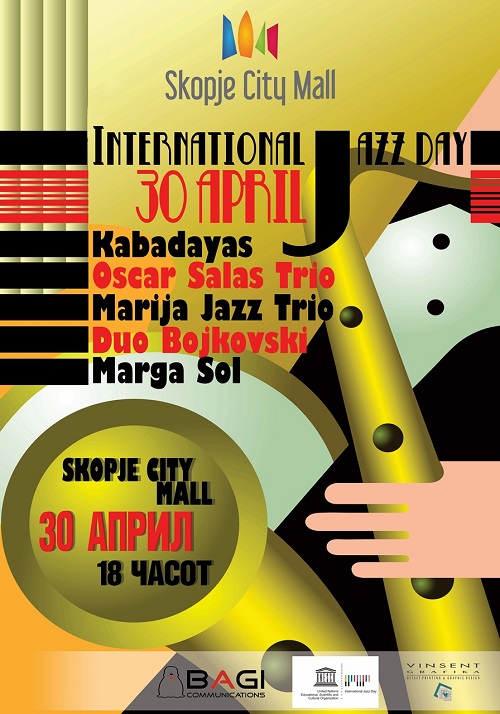 Агенцијата „Баги комуникации“ во партнерство со „Ситимол“ се приклучуваат кон светската прослава на Меѓународниот ден на џез-музиката, кој се прославува на 30 април, традиционално, трета година по ред. Инаку, прославата е под покровителство на УНЕСКО и е со цел да се потенцира џезот и неговата дипломатска улога во обединување на луѓето од сите делови на светот.
