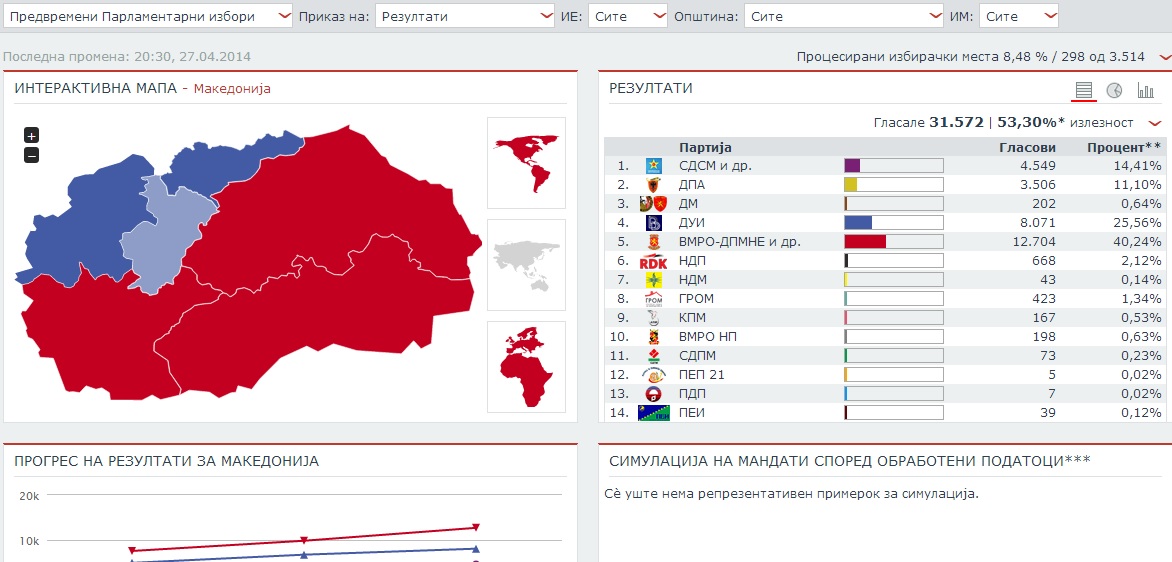 По обработени 8,48 отсто од гласовите, ДИК излезе со следниве резултати: