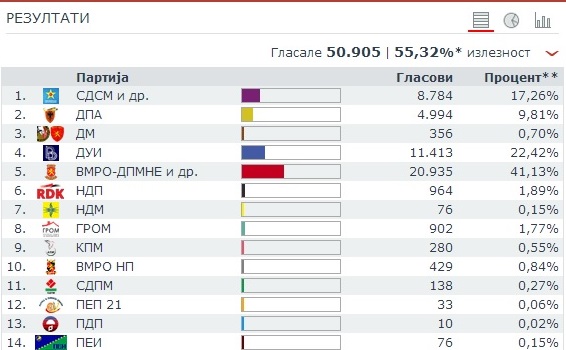 По обработени 12,04 отсто од гласовите, ДИК излезе со следниве резултати: